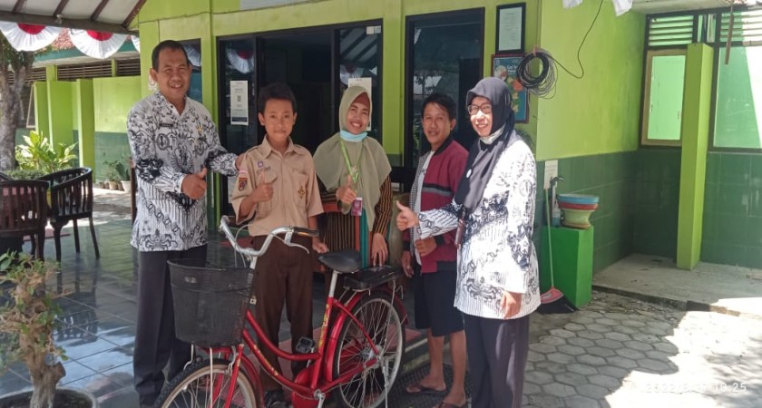 “Sekarang sudah ada sepeda dipakai dan dirawat, sudah tidak ada kendala lagi artinya harus lebih rajin lagi ke sekolah untuk meraih masa depan ya,” demikian pesan Dra. Murilah, S.Pd. kepada siswa yang menerima sepeda.