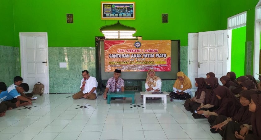Seperti tahun-tahun sebelumnya yang diprogramkan, SMPN 1 Ambal barusaja melaksanakan kegiatan rutin tanggal 10 Muharam. Kegiatan yang dimaksud adalah santunan untuk siswa SMPN 1 Ambal yang yatim/ piatu/ yatim piatu dan dhuafa, pada Hari Jumat 28 Juli 2023 dengan mengambil tempat di mushola sekolah “Nurul Tholibin”. Sebanyak 61 siswa terdiri dari 36 yatim/ piatu, 3 yatim piatu dan 22 dhuafa dari kelas VII hingga IX mendapatkan santunan.